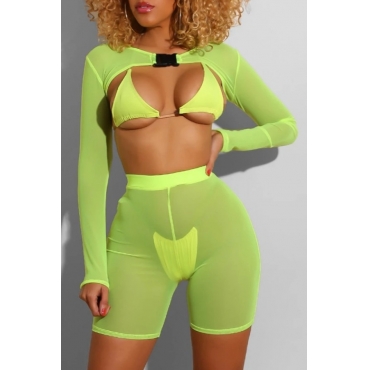 Lovely See-through Green Four-piece Swimsuit