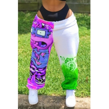 Lovely Street Print Patchwork Purple Pants