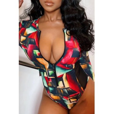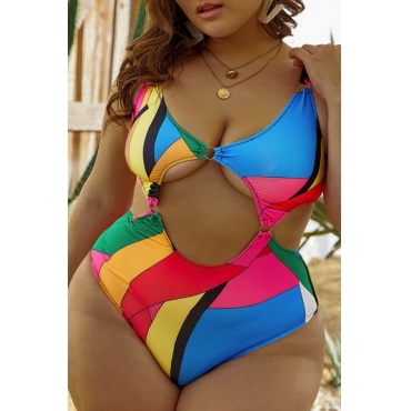 Lovely Patchwork Hollow-out Multicolor Plus Size One-piece Swimsuit