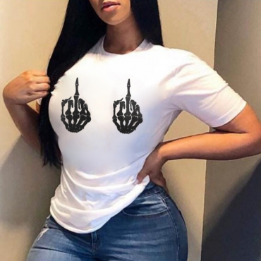 Lovely Casual O Neck Print White T-shirt