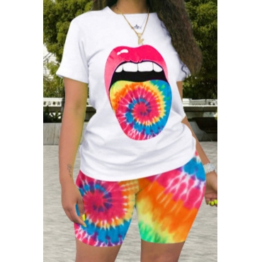 Lovely Leisure Lip Print Red Plus Size Two-piece Shorts Set