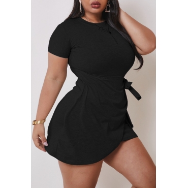 Lovely Casual Asymmetrical Black Mini Plus Size Dress