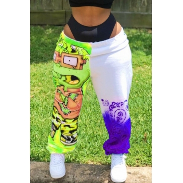 Lovely Street Print Patchwork Green Pants