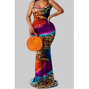 Lovely Casual U Neck Tie-dye Purple Maxi Plus Size Dress