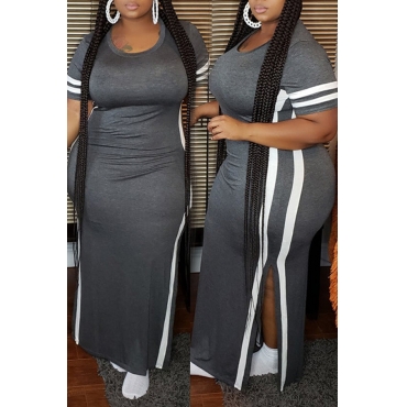 Lovely Leisure Side Slit Grey Maxi Plus Size Dress