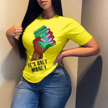 Lovely Casual Print Yellow T-shirt