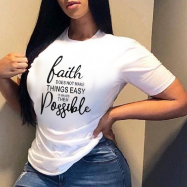 Lovely Casual O Neck Letter Print White T-shirt