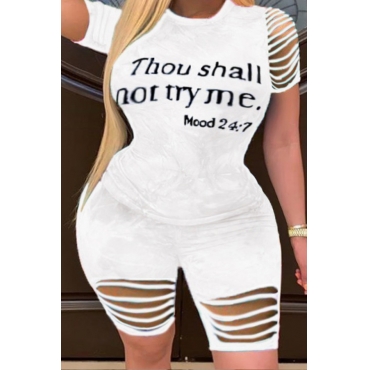 Lovely Leisure O Neck Letter White Plus Size Two-piece Shorts Set