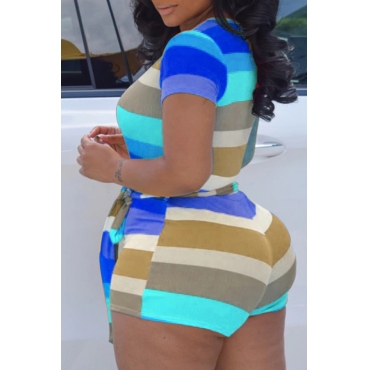 Lovely Trendy Striped Blue Plus Size One-piece Romper