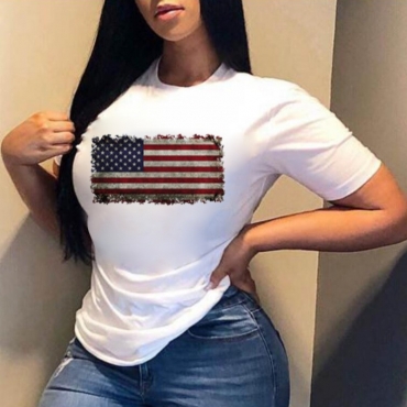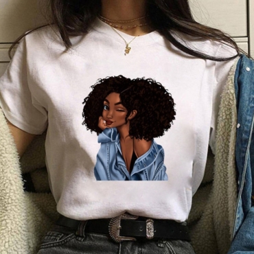Lovely Leisure O Neck Print White T-shirt