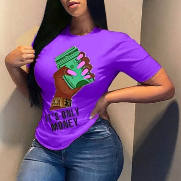 Lovely Casual Print Purple T-shirt