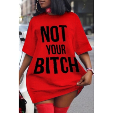 Lovely Casual Letter Print Red Mini Plus Size Dress
