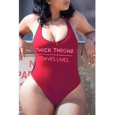 Lovely Letter Red Plus Size One-piece Swimsuit