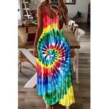 Lovely Bohemian Tie-dye Red Ankle Length Plus Size Dress