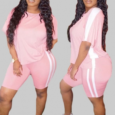 Lovely Sportswear Patchwork Pink Plus Size Two-piece Shorts Set