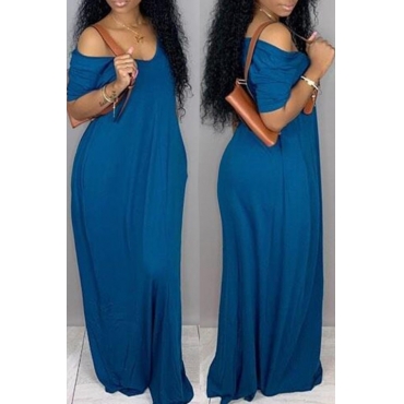 Lovely Casual V Neck Loose Blue Maxi Plus Size Dress