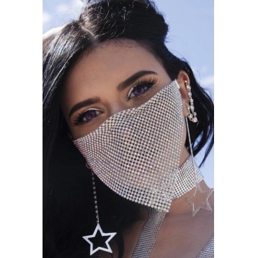 Lovely Sweet Rhinestone Decorative Silver Face Mask
