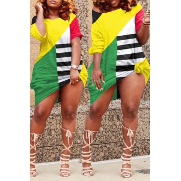 Lovely Leisure Color-lump Patchwork Yellow Knee Length Dress