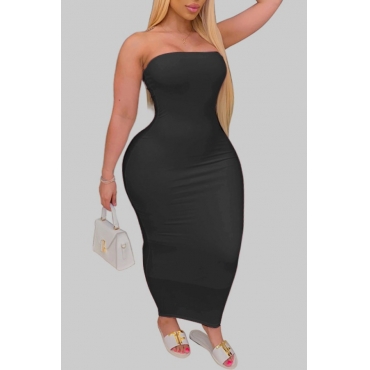 lovely Casual Dew Shoulder Black Ankle Length Plus Size Dress