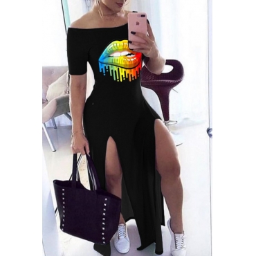 Lovely Casual Lip Print Black Maxi Plus Size Dress