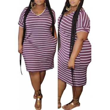 Lovely Leisure Striped Purple Knee Length Plus Size Dress