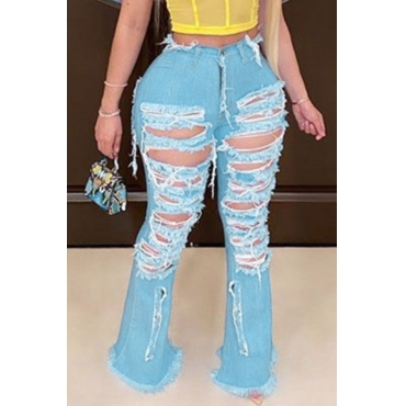 Lovely Stylish Hollow-out Blue Plus Size Jeans