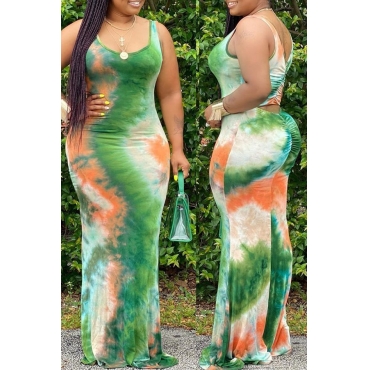 Lovely Casual Tie-dye Green Maxi Plus Size Dress