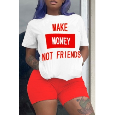 Lovely Casual Letter Print Red Plus Size Two-piece Shorts Set