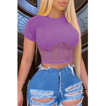 Lovely Stylish O Neck Patchwork Purple Blouse