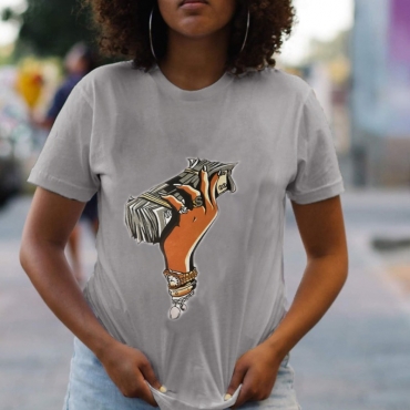 Lovely Casual O Neck Print Grey T-shirt