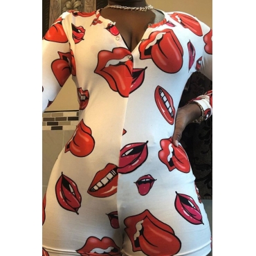 Lovely Trendy Lip Print White Plus Size One-piece Romper