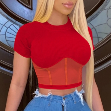 Lovely Stylish O Neck Patchwork Red Blouse