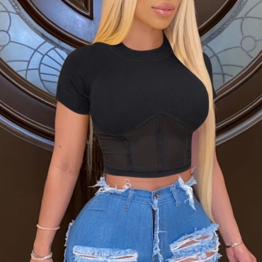 Lovely Stylish O Neck Patchwork Black Blouse
