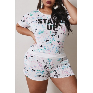 Lovely Leisure Print White Plus Size Two-piece Shorts Set