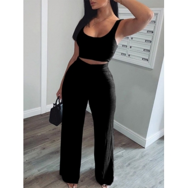 Lovely Sportswear U Neck Basic Black Two Piece Pants Set