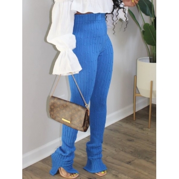 Lovely Leisure Patchwork Hollow-out Blue Pants