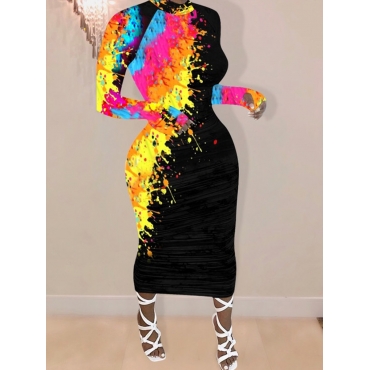 Lovely Casual Graffiti Print Yellow Mid Calf Dress