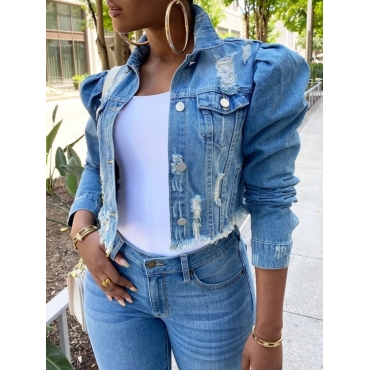 Lovely Street Turndown Collar Buttons Design Blue Denim Jacket