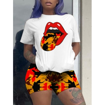 Lovely Street Camo Print Orange Two Piece Shorts Set