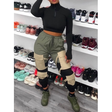 Lovely Sportswear Pocket Patched Army Green Pants