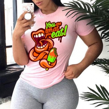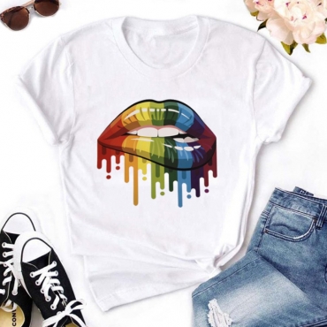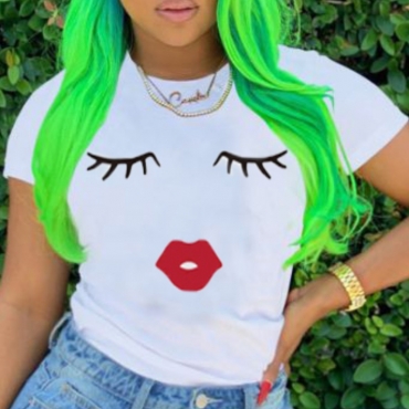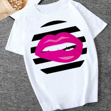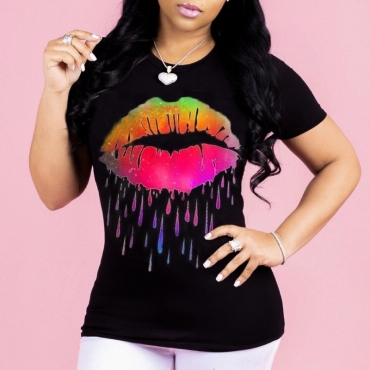 Lovely Leisure O Neck Lip Print Black T-shirt