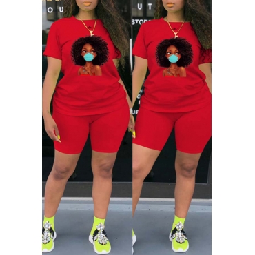 Lovely Leisure Print Red Plus Size Two-piece Shorts Set