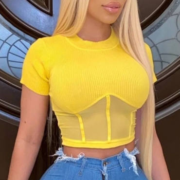 Lovely Stylish O Neck Patchwork Yellow Blouse