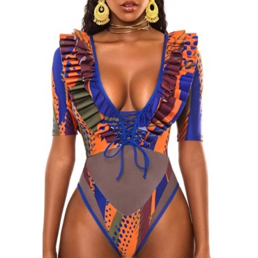 Lovely Patchwork Blue One-piece Swimsuit