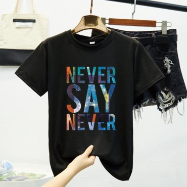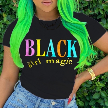 Lovely Casual O Neck Letter Black T-shirt