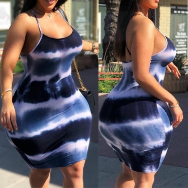 Lovely Casual Tie-dye Blue Knee Length Plus Size Dress