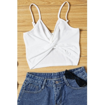 Lovely Casual Knot Design White Camisole