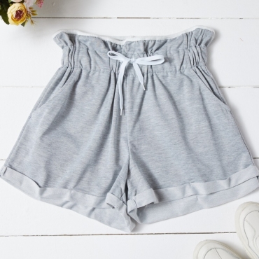 Lovely Casual Lace-up Grey Shorts