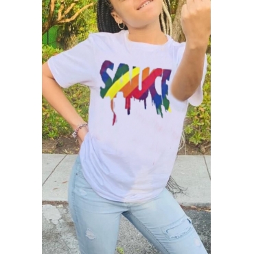 Lovely Casual O Neck Letter Multicolor T-shirt