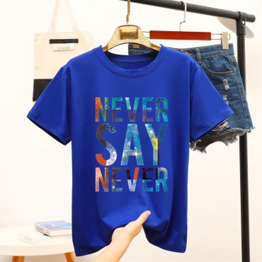 Lovely Casual O Neck Letter Blue T-shirt